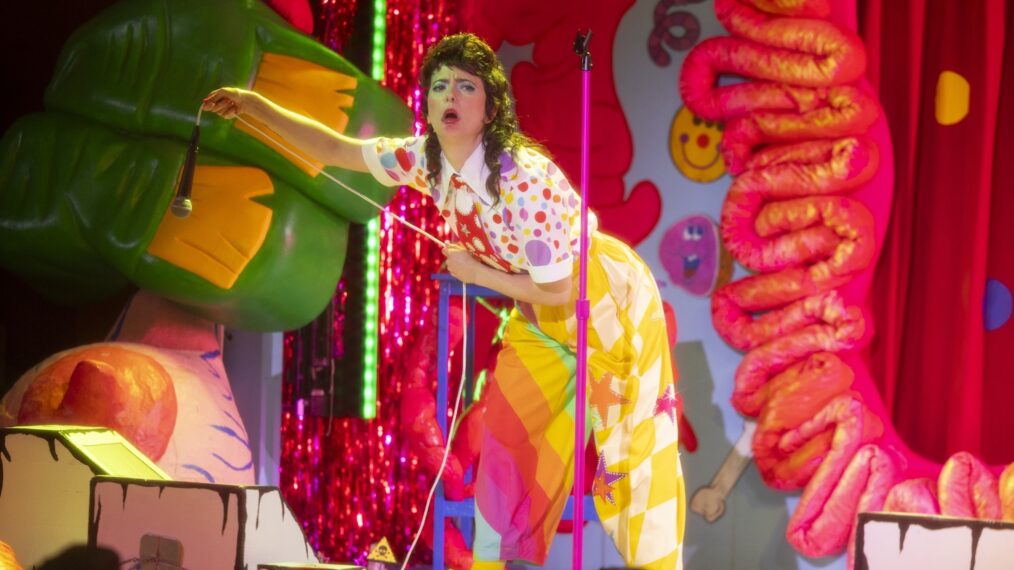Holding court on a stage that looks like a demented version of Pee-Wee’s Playhouse, framed in what looks like an intestinal tract, Saturday Night Live‘s proudly bawdy Sarah Sherman is determined to make you squirm in an outrageously scatological stand-up set. She taunts the audience as “perverts” while reveling in graphic body humor: “What kind of comedy show did you think you were seeing tonight?” she barks. From the macabre opening, with master of tastelessness John Waters urging her to “Go out there and remind them why God invented the barf bag,” to the surreal grand finale, with the front rows covered in blood splatter, this raucous special is not for the squeamish.